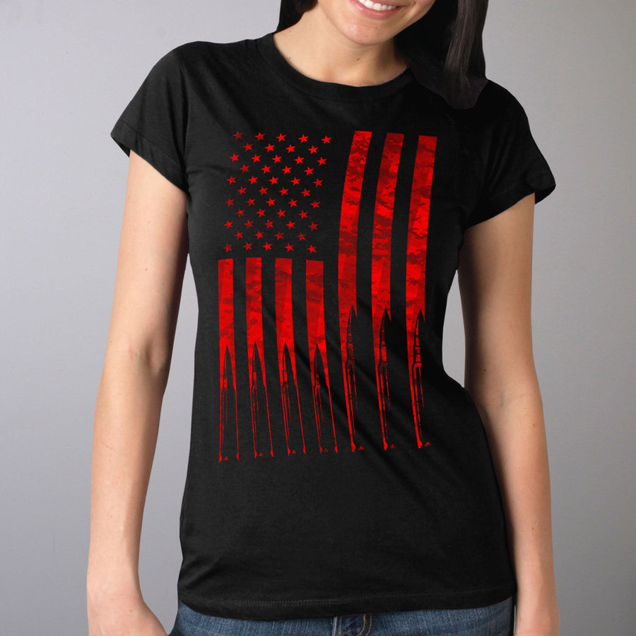 Hot Leathers GLR1498 'Flag and Bullets' Full Cut Ladies Black T-Shirt